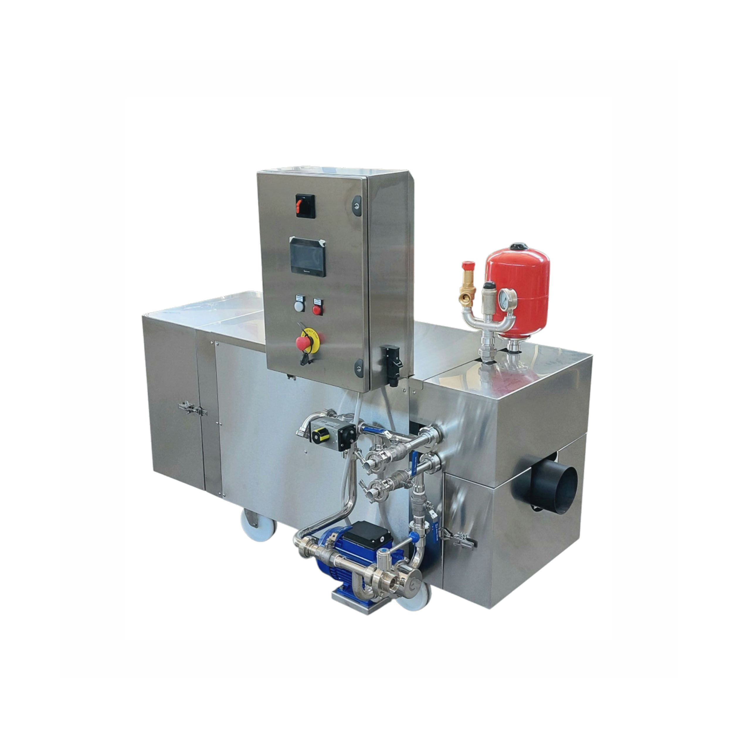 Most of the bacteria subjected to high temperature are deactivated, allowing a longer lasting conservation to the liquid. A bypass circuit returns the product to the interior of the exchanger if the exit temperature is not the required one, or if an external signal opens the return valve (e.g. filler float). The plant is equipped with an EPDM rubber impeller pump, a diesel burner, a steel support platform and a control panel to set the temperature.